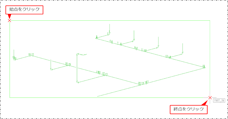 クリックまたは範囲選択し、同じ管番号を付加する部品をすべて選択します。