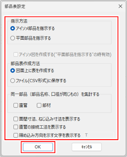 部品表の作成方法を設定し、[OK]ボタンをクリックします。