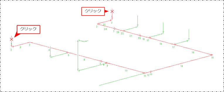 配管の両端の接続工法を表示する場合は、チェックを付けます。 |