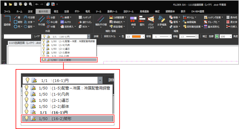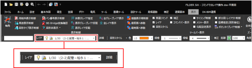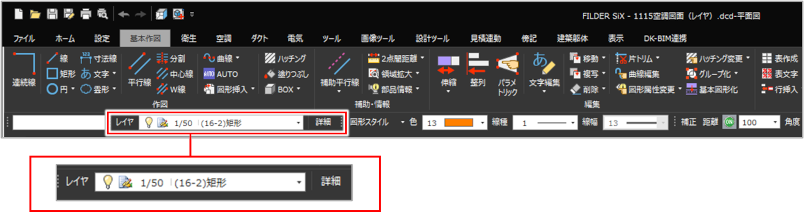 [レイヤ]ツールバーに参照した図形のレイヤが表示され、カレントレイヤに変更されます。
