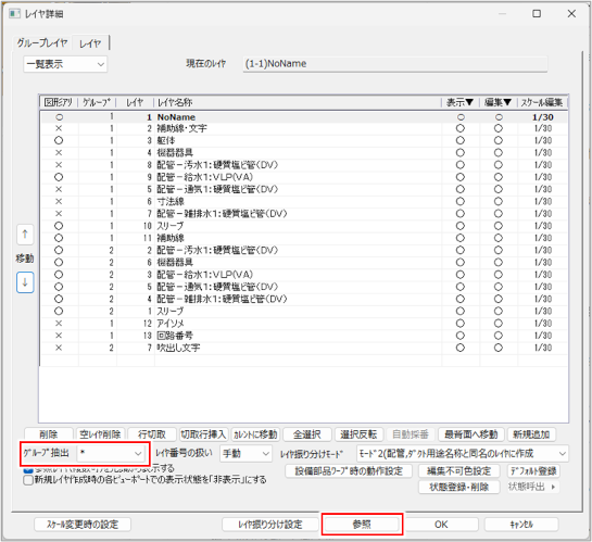 - [キャンセル]ボタン:[レイヤ参照]コマンドが終了します。