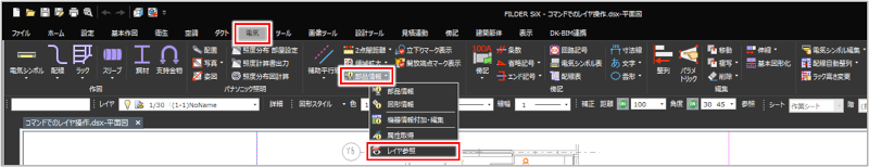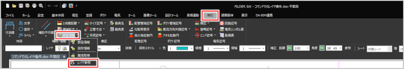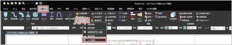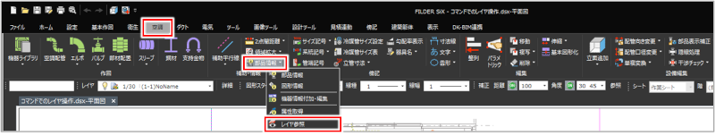 [ホーム]タブ>[部品情報]プルダウンメニュー>[レイヤ参照] [基本作図]タブ>[部品情報]プルダウンメニュー>[レイヤ参照] [衛生]タブ>[部品情報]プルダウンメニュー>[レイヤ参照] [空調]タブ>[部品情報]プルダウンメニュー>[レイヤ参照] [ダクト]タブ>[部品情報]プルダウンメニュー>[レイヤ参照] [電気]タブ>[部品情報]プルダウンメニュー>[レイヤ参照] [画像ツール]タブ>[部品情報]プルダウンメニュー>[レイヤ参照] [傍記]タブ>[部品情報]プルダウンメニュー>[レイヤ参照] [建築躯体]タブ>[部品情報]プルダウンメニュー>[レイヤ参照] |
