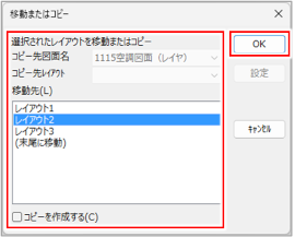 レイアウトの移動先またはコピー先を選択し、[OK]ボタンをクリックします。