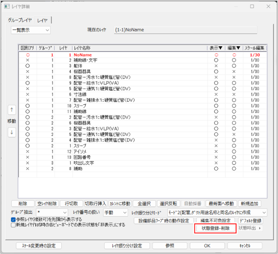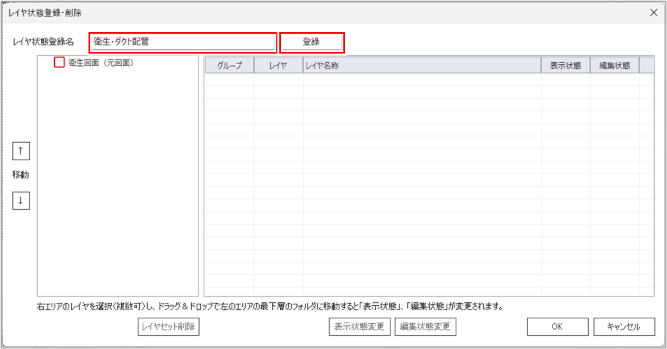 [レイヤ状態登録・削除]ダイアログが表示されます。