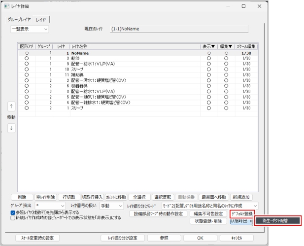 [レイヤ状態登録・削除]ダイアログの右側に、登録したレイヤ状態が一覧表示されます。