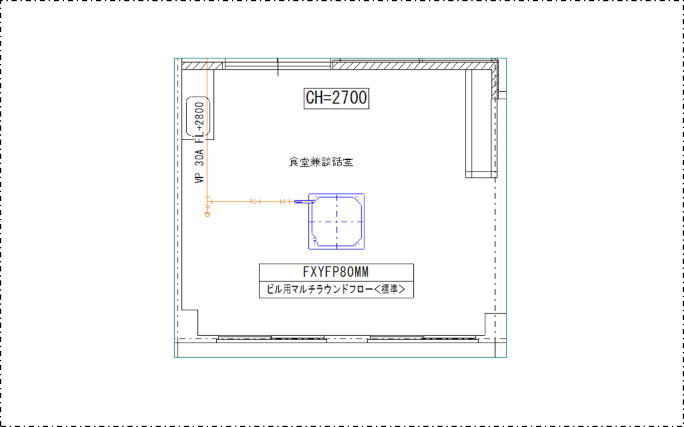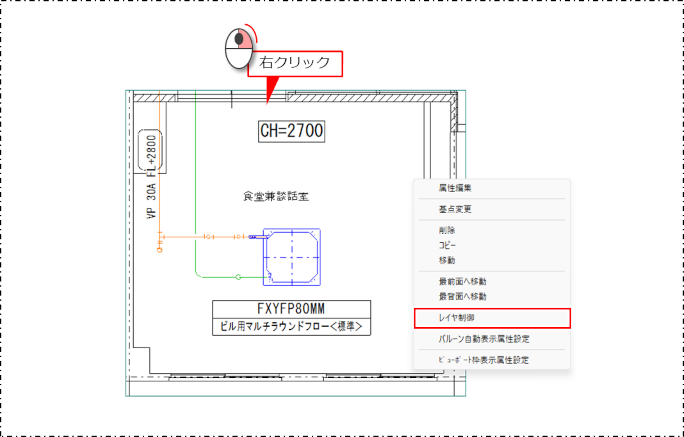 ここでは、「配管-冷媒:冷媒配管用銅管」レイヤを非表示にした場合を例に説明します。
