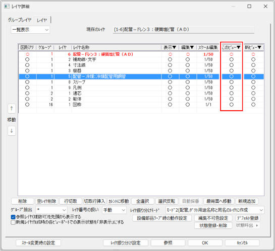 [このビュー▼]で、選択したビューポート内のレイヤの表示・非表示を切り替えます。