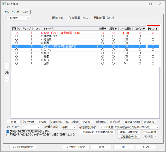 [新ビュー▼]で、今後作成するビューポート内のレイヤの表示・非表示を切り替えます。