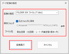 変換元の図面と同じフォルダに保存する場合にチェックを付けます。 保存先を変更する場合は、チェックを外して[参照]ボタンをクリックし、保存するフォルダを選択します。 |