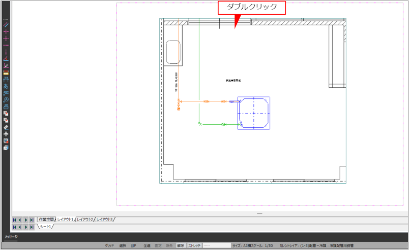 レイアウトがカレントのまま、画面が作業空間に移動します。