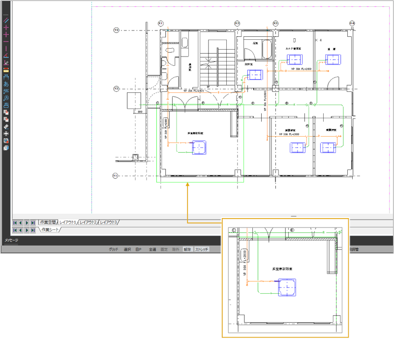 ロック状態にしても、ビューポート内に表示されている図形は編集できます。ロック状態は、すべての図面・レイアウトで共通の設定です。