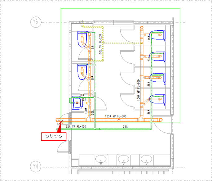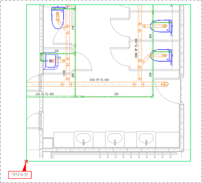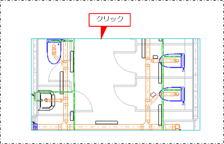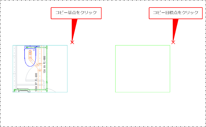 コピー基点をクリックしてから、コピー目標点をクリックします。