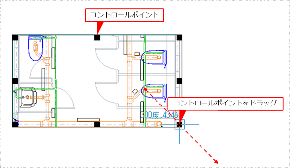 コントロールポイントをドラッグし、拡大・縮小する方向へマウスを動かします。