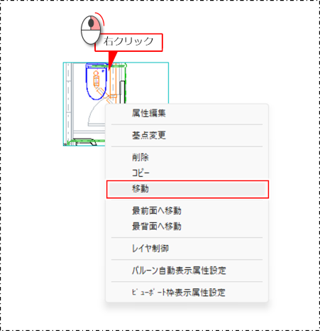 ビューポートを右クリックし、メニューから[移動]をクリックします。
