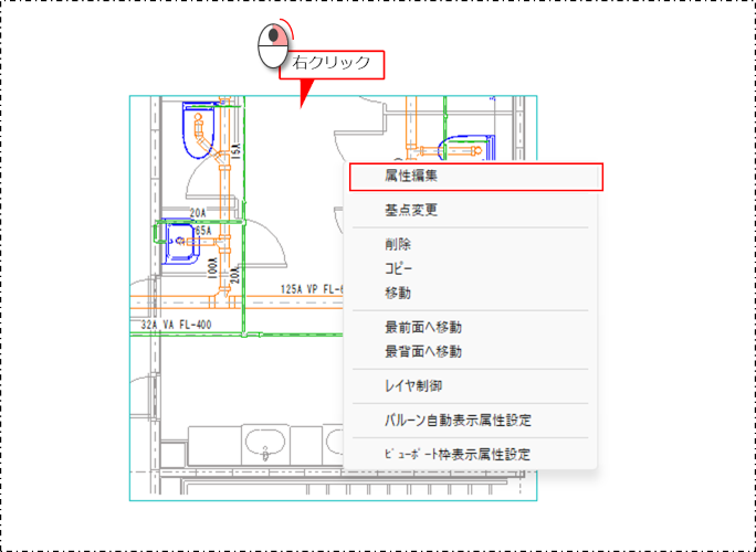 ビューポートを右クリックし、メニューから[属性編集]をクリックします。