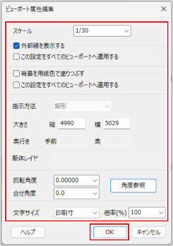 スケール以外にも、ビューポートの大きさ、外郭線の表示・非表示などを変更できます。