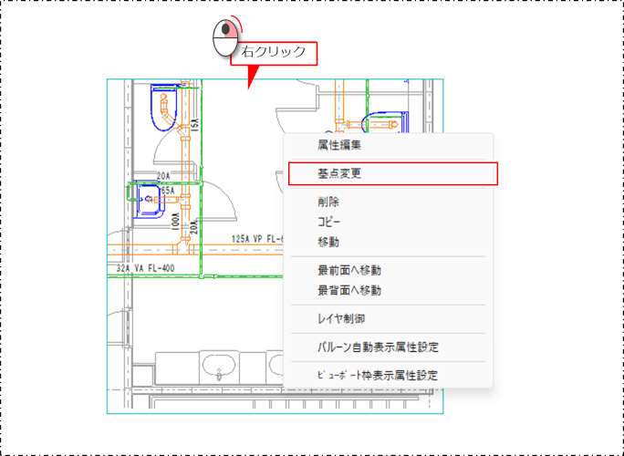 ビューポートを右クリックし、メニューから[基点変更]をクリックします。