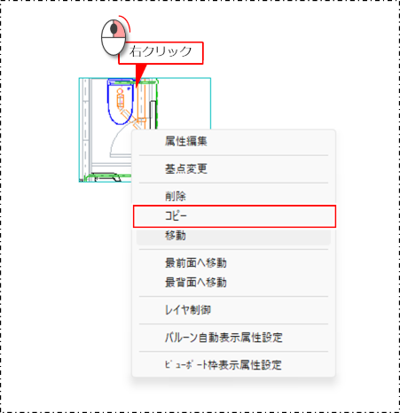 ビューポートを右クリックし、メニューから[コピー]をクリックします。