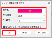 [表示色][表示線種][ペン番号]を選択し、[OK]ボタンをクリックします。