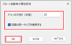 [バルーンの大きさ(半径)]を1~20の範囲で入力し、[OK]ボタンをクリックします。