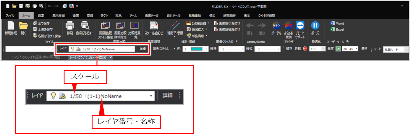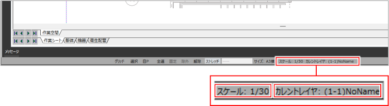 レイヤのスケールが表示されます。 スケール欄をクリックすると、カレントレイヤが変更されます。 |