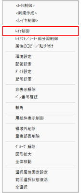 - 画面上の図形のない位置で右クリックして表示されるメニューの[レイヤ制御]をクリックする