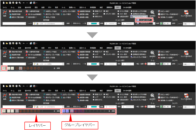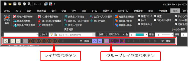 グループレイヤバーの表示・非表示を切り替える場合にクリックします。 |