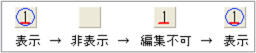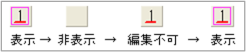 カレントレイヤを除くすべてのレイヤの表示・非表示、編集不可を切り替える場合にクリックします。クリックするたびに、表示→非表示→編集不可→表示の順に切り替わります。 |