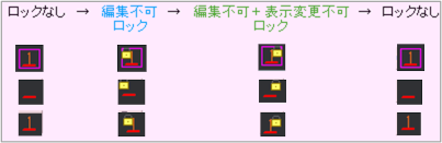 レイヤの編集可・編集不可の状態が表示されます。クリックすると、編集可・編集不可が切り替わります。 |