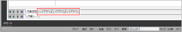 レイアウトは、[作業空間]タブの右に表示されます。タブをクリックしてレイアウトを切り替えます。