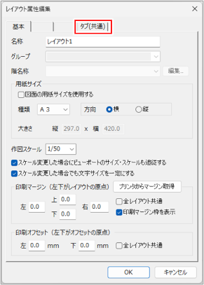 属性を変更するレイアウトのタブを右クリックし、メニューから[レイアウト属性編集]をクリックします。