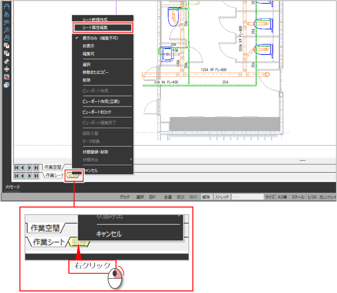 [躯体]シートを右クリックし、メニューから[シート属性編集]をクリックします。