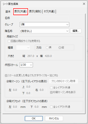 [表示(共通)]タブをクリックします。