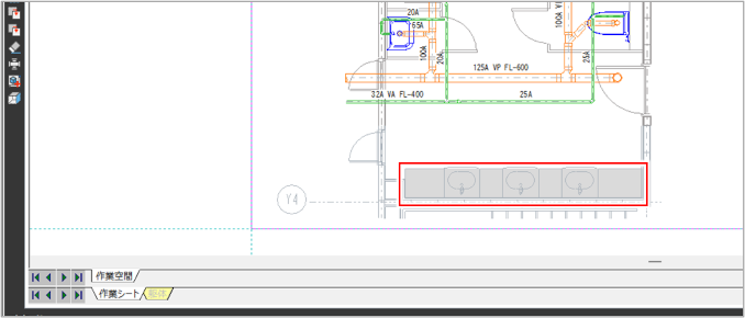 [躯体]シートで塗りつぶした図形が、[作業シート]で透過した状態で表示されます。
