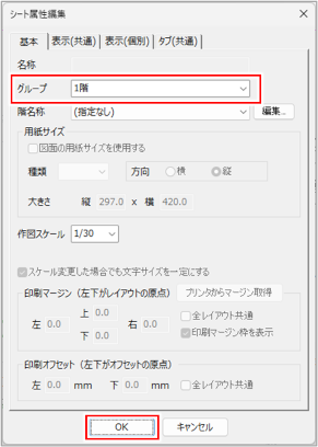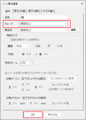 [グループ]で[(指定なし)]を選択し、[OK]ボタンをクリックします。