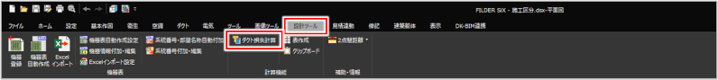[設計ツール]タブの[ダクト損失計算]コマンド(