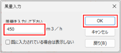 吹き出し口の風量を入力し、[OK]ボタンをクリックします。