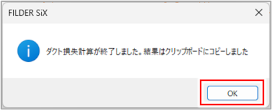 [ダクト抵抗計算]ダイアログが閉じ、確認ダイアログが表示されます。