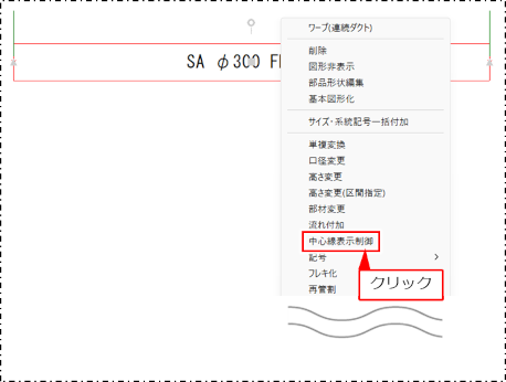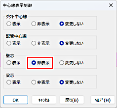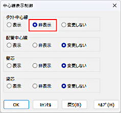 [ダクト中心線(配管中心線)]を[非表示]にします。