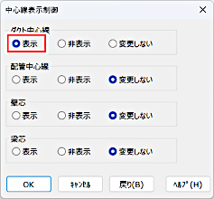 配管とダクトの中心線や壁芯と梁芯の表示・非表示を切り替える