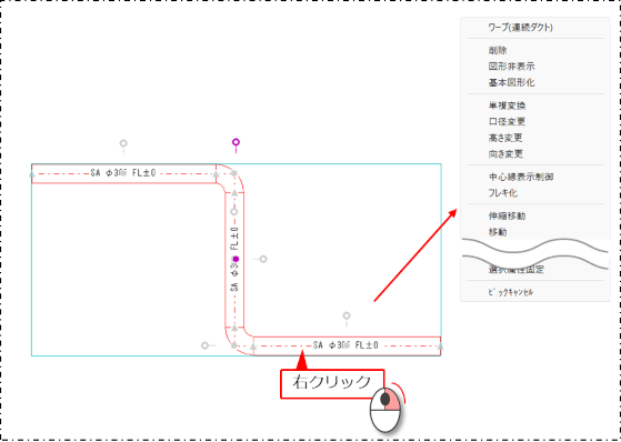 ここでは、例としてダクトの中心線を非表示に切り替えます。