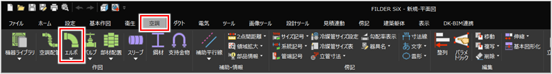 [衛生]タブ>[エルボ] [空調]タブ>[エルボ] |
