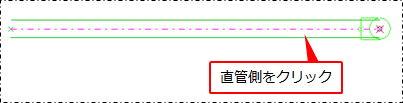 直管にマウスを近づけて[接続点]と表示されるポイントでクリックします。