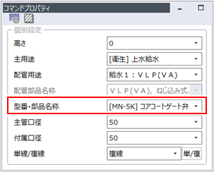 [型番・部品名称]には、選択した[配管用途]の継手として登録されている部品の一覧が表示されます。