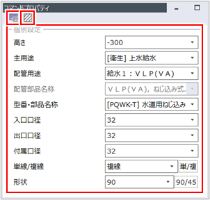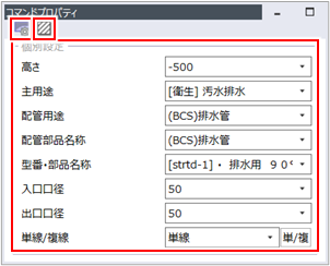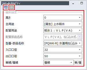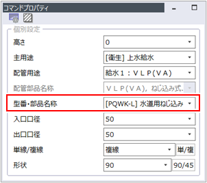 [高さ][口径]は接続部品の接続点をクリックすることで自動的に設定されます。