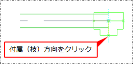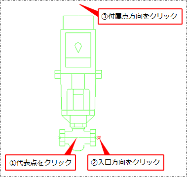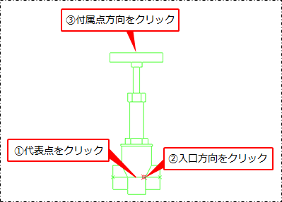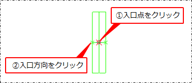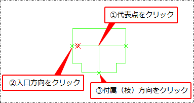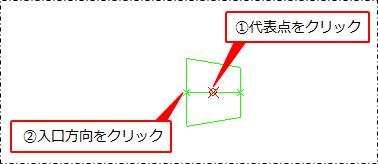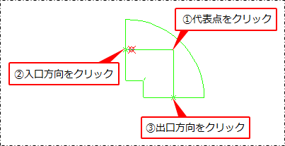 代表点をクリックし、入口方向・付属点方向(ハンドルの向き)をクリックします。