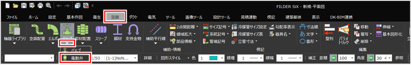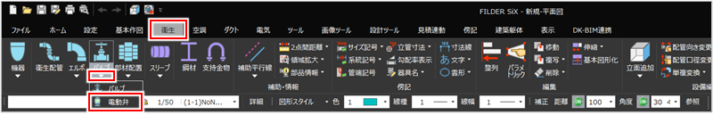 [衛生]タブ>[バルブ]プルダウンメニュー>[電動弁] [空調]タブ>[バルブ]プルダウンメニュー>[電動弁] |