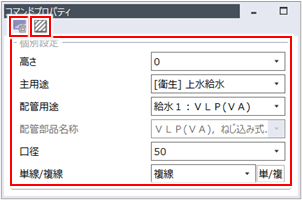 配管の用途を選択します。配管用途を編集する場合は、[用途マスター設定]を選択します。詳しくは、以下を参照してください。 |