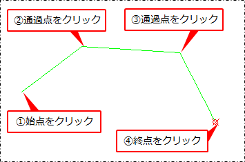 作図する形状として[単線]を選択します。[単/複]ボタンをクリックすると、単線と複線が交互に切り替わります。 |