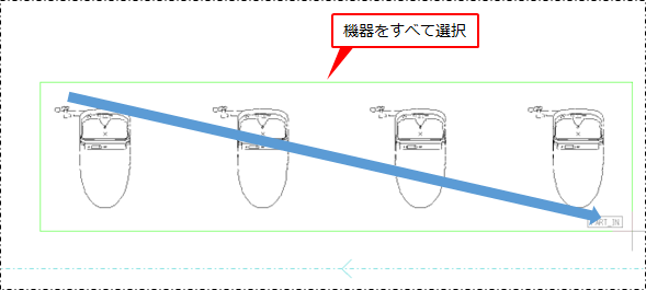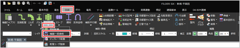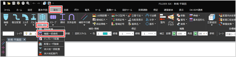 [衛生]タブ>[部材配置]プルダウンメニュー>[機器一括接続] [空調]タブ>[部材配置]プルダウンメニュー>[機器一括接続] |